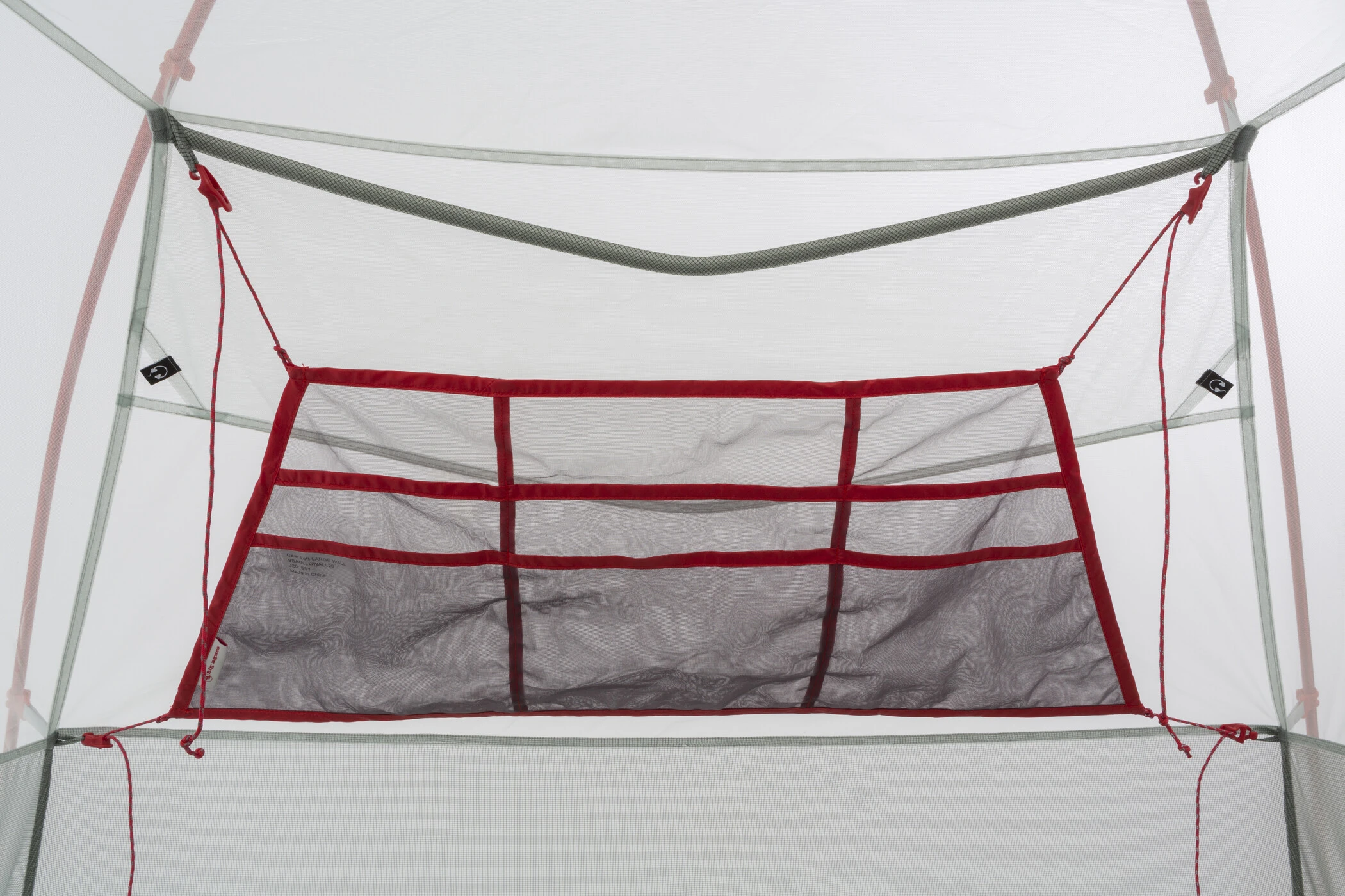 Houd uw belangrijkste spullen binnen handbereik met een lichtgewicht gaaszolder die aan de lussen van uw Big Agnes-tent haken.