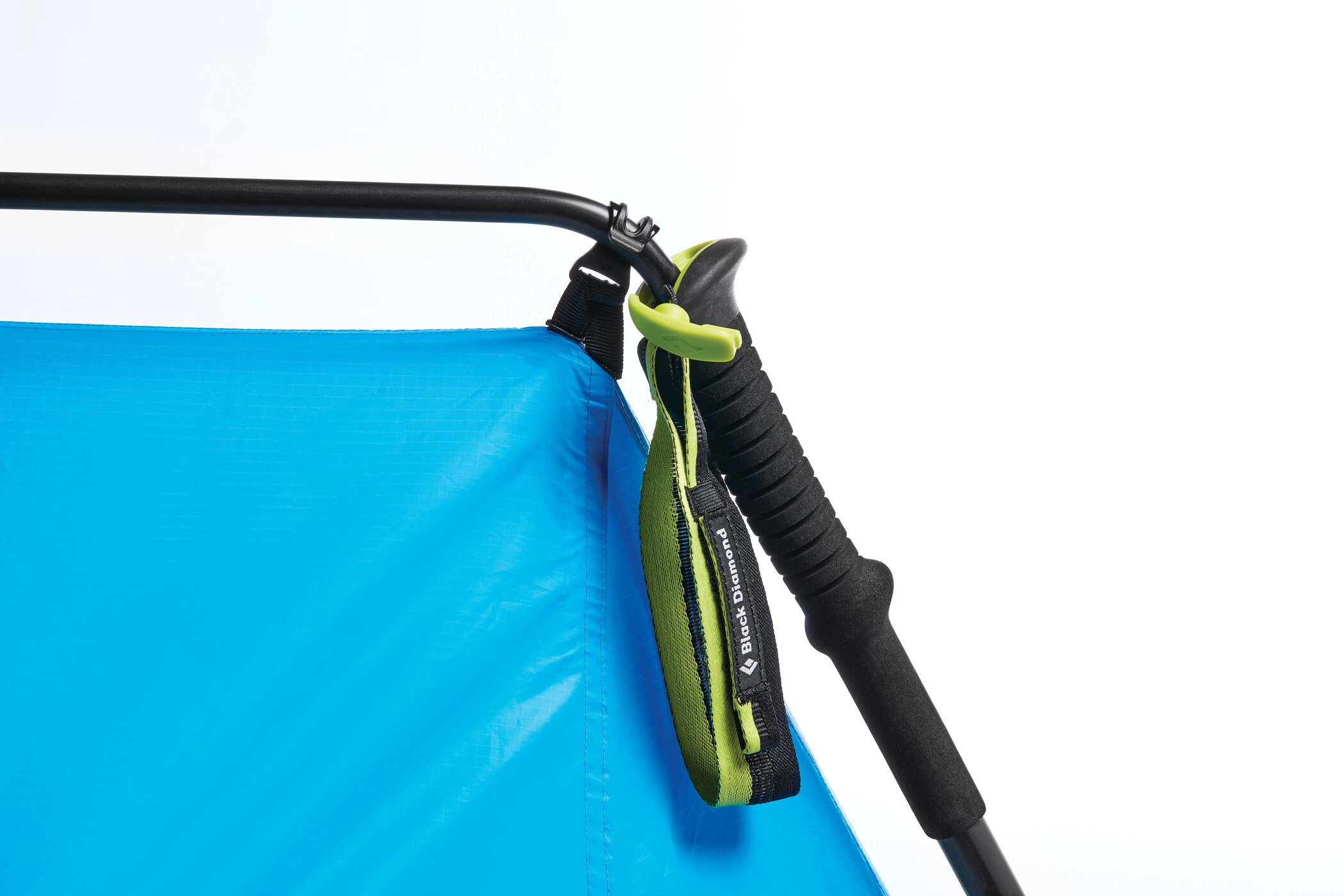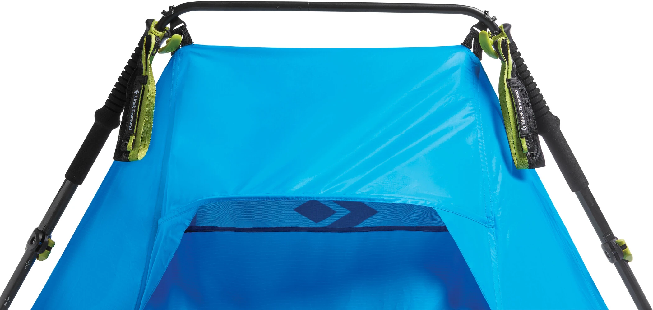 Für den Aufbau werden zwei Black Diamond Carbon AR (Accessory Ready) Stöcke und eine kleine DAC-Querstange benötigt, die in den Accessory Ready-Griff eingesetzt wird und die Trekkingstöcke verbindet. Mit vier Abspannpunkten zur Befestigung bietet das Zelt eine zeit- und gewichtssparende Option, einfach im Aufbau und robust bei windigen Verhältnissen.