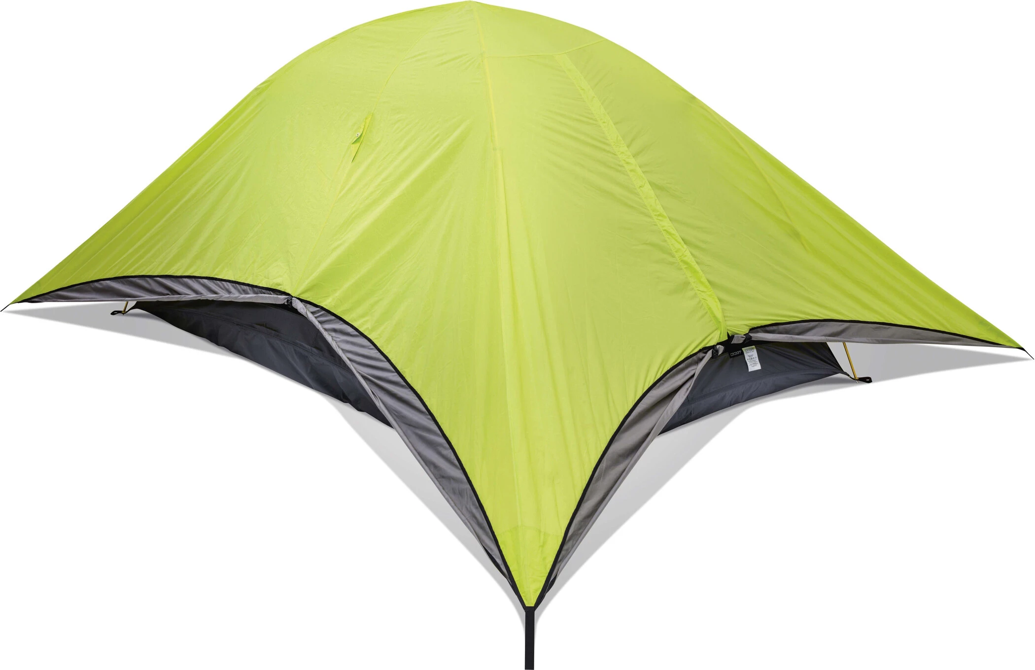 Regenhoes en schaduw die de COCOON Mosquito Dome Double, een zelfstaand koepelvormig muggengaas, in een handomdraai verandert in een eenvoudige tent. De Rainfly is gemaakt van gesiliconiseerd ripstop nylon en is licht, klein verpakt en snel op te zetten.