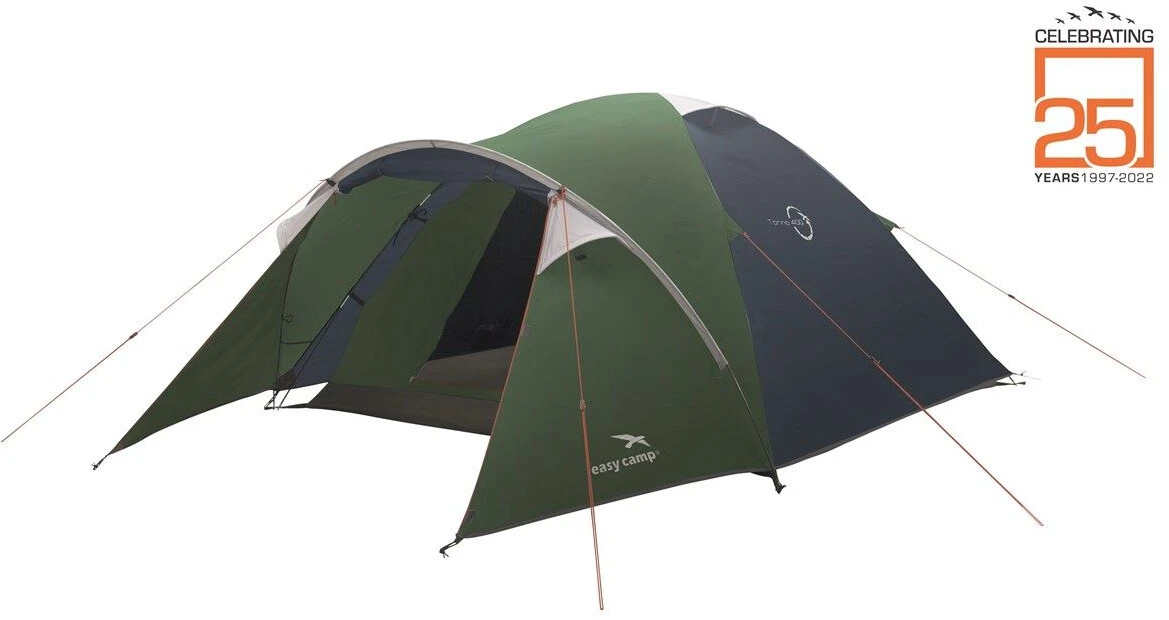 Bij de Torino 400 van Easy Camp wordt eerst de binnentent opgezet. Het heeft een beschutte voorkamer voor opslag. Het klassieke koepelontwerp zorgt voor een goede hoogte en veel bruikbare leefruimte in een betaalbaar, klein en lichtgewicht pakket. Het ontwerp heeft de tand des tijds doorstaan en is in vele situaties nuttig gebleken. Deze vierpersoonstent is ideaal voor koppels, jonge gezinnen en vrienden die de eenvoud en veelzijdigheid van een koepeltent op prijs stellen.