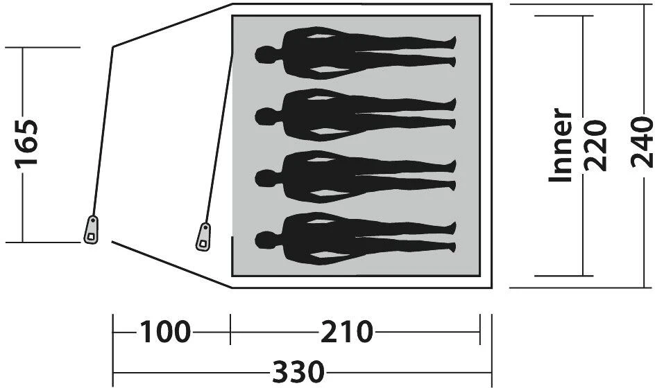 - Ventilatie aan de voor- en bovenkant voor een goede luchtcirculatie in de tent