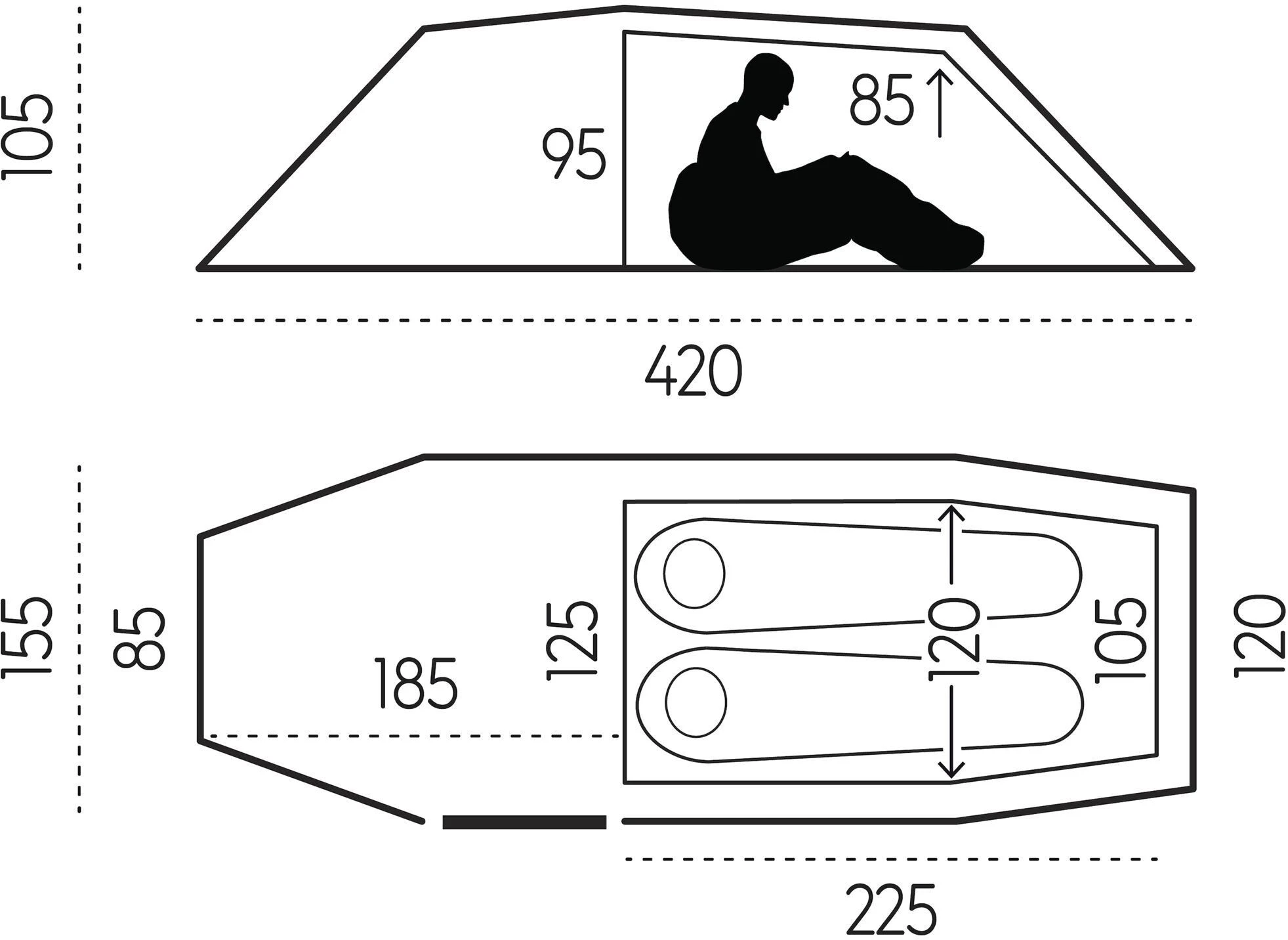 - Materiaal buitentent: 20d TripleRip Sil/Sil