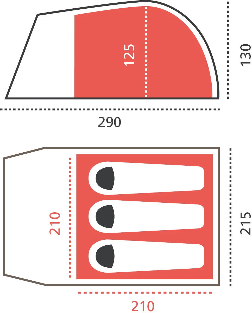 Topeka 3 is een klassieke koepeltent die ruim plaats biedt aan drie tot vier personen en hun persoonlijke bezittingen. Voor de binnentent bevindt zich een beschutte vestibule die de binnentent beschermt tegen regen en extra opbergruimte biedt voor bagage of spullen. Geweldig, regelbaar binnententklimaat dankzij de nieuwe GrandFlow tentdakventilatie. De binnentent kan bij droog weer apart worden opgezet. Perfect voor fietsen en kajakken.