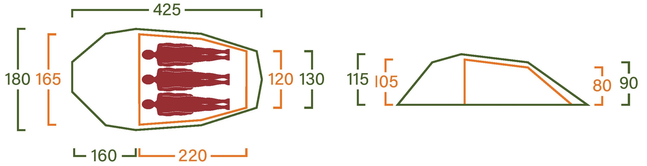 - Materialen: Buitentent = Rainguard Superlight / Binnentent = Airflow Superlight / Vloer = Rainguard Pro
