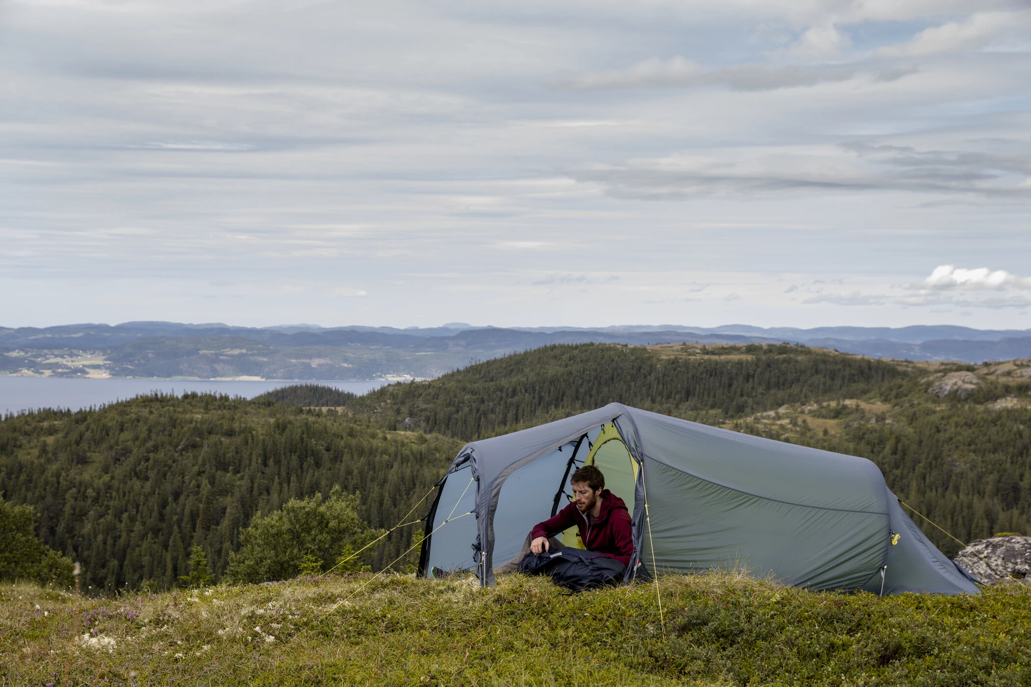 Lofoten Superlight Camp is de lichte versie van de Lofoten Pro Camp en overtuigt ook met een royaal tent-interieur en een royale apside. Zonder de volledige functionaliteit op te offeren, is het totale gewicht tot een minimum beperkt. Dit geldt niet alleen voor alle binnen- en buitententstoffen, maar ook voor kanalen, stokken en ventilatie. Een eenvoudige ventilator en twee minimalistische ventilatieopeningen zorgen voor een uitstekend ruimteklimaat. Omdat de binnententent aan de buitentent hangt, is de tent in een mum van tijd klaar. De apsidal kan volledig worden geopend en verfraait het uitzicht op saaie regenachtige dagen. Lofoten Superlight Camp is een comfortabele en lichtgewicht tunneltent die weinig ruimte inneemt in je rugzak.