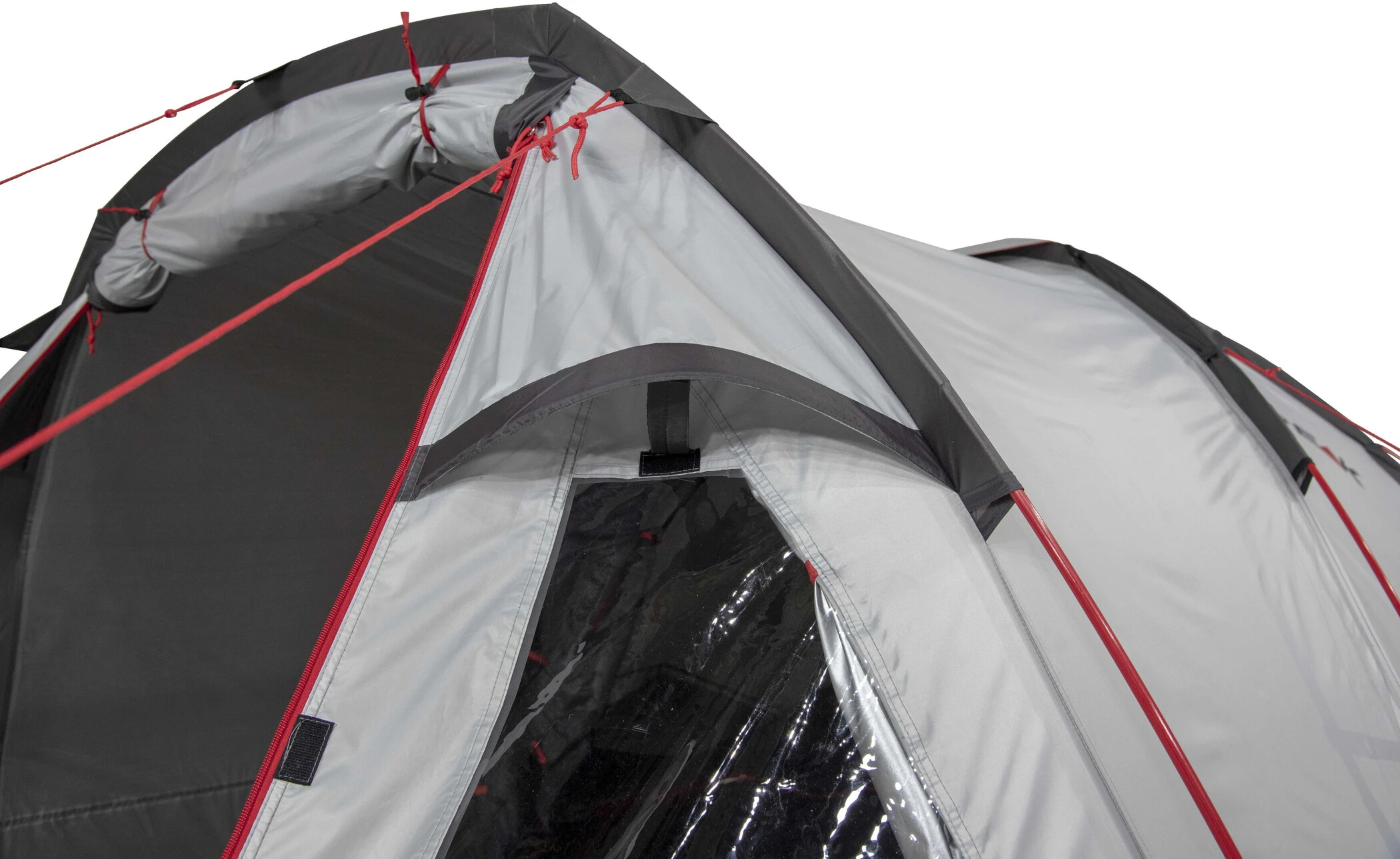 De A-vormige vestibule biedt veel ruimte. Een stevige vloer aan het voorfront van de binnentent en spatlappen houden het vuil buiten het voorportaal. Kristalhelder venster met privacyscherm. Dubbele ingang met gaasdeur houdt ongedierte weg en zorgt voor een uitstekende ventilatie. Achterdeur voor extra opbergruimte en optimaal ademend vermogen. Drie all-weather ventilatoren zorgen voor een continue luchtstroom. Houd de ventilatie altijd open om de volledige functionaliteit te garanderen.