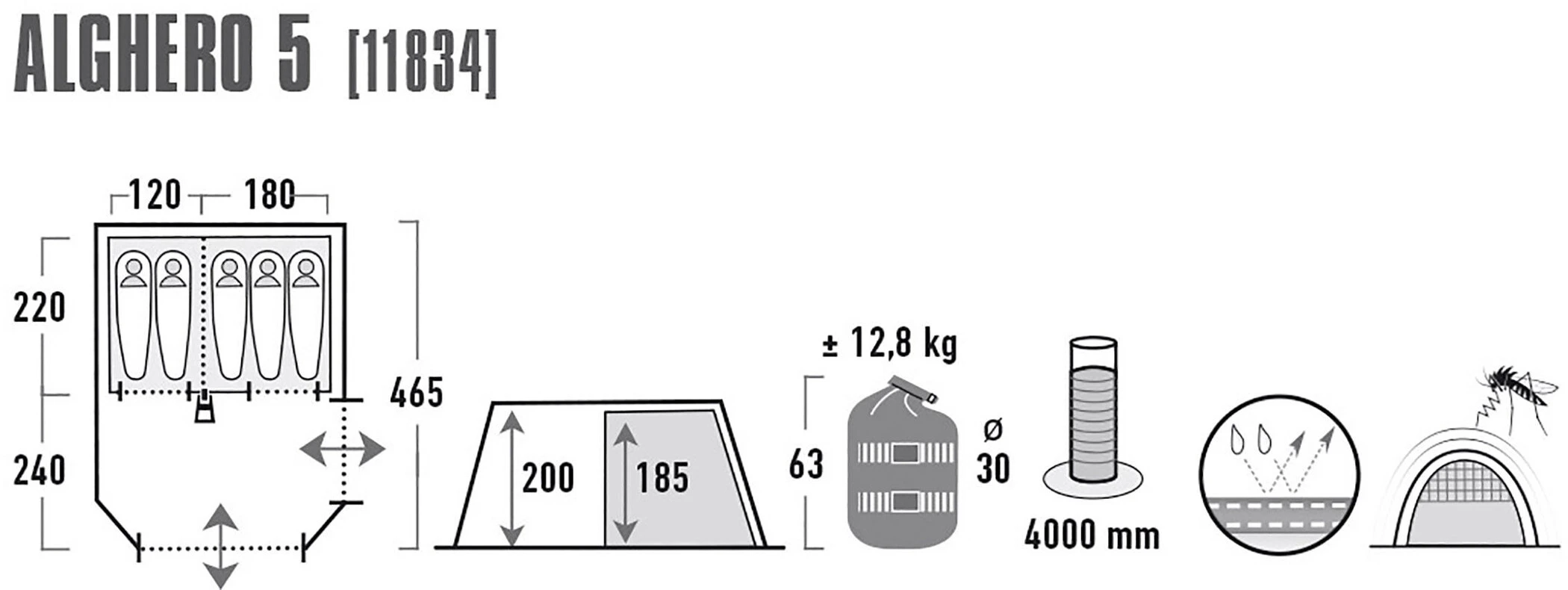 High Peak Alghero 5 Tent, grijs