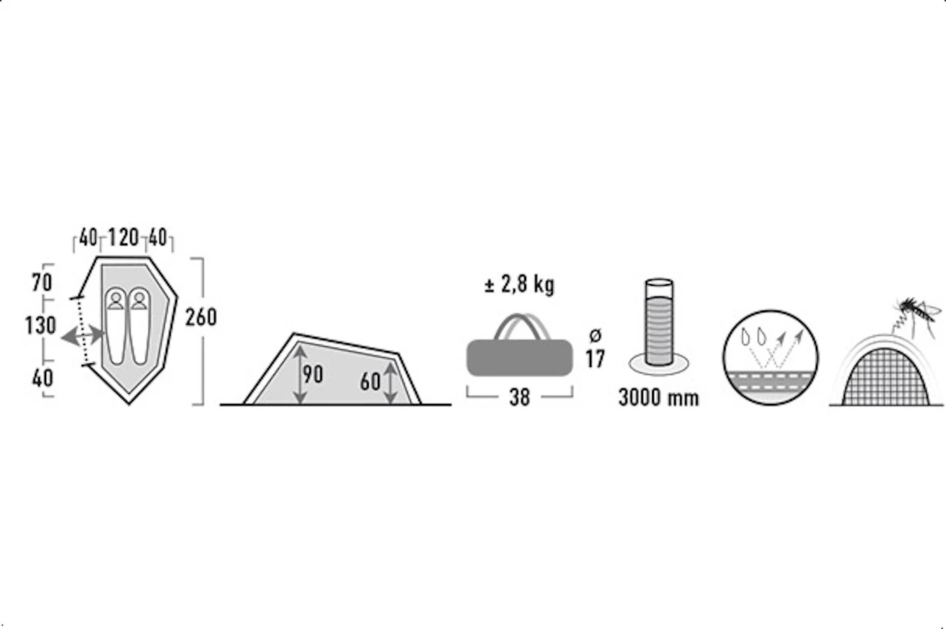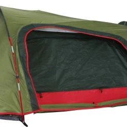 Het interieur biedt ruimte voor 2 personen en extra bergruimte. De doorlopende ventilatie ventileert de tent zelfs op regenachtige dagen. De ingang met klamboe beschermt tegen insecten en is een ideaal uitzicht op de natuur.