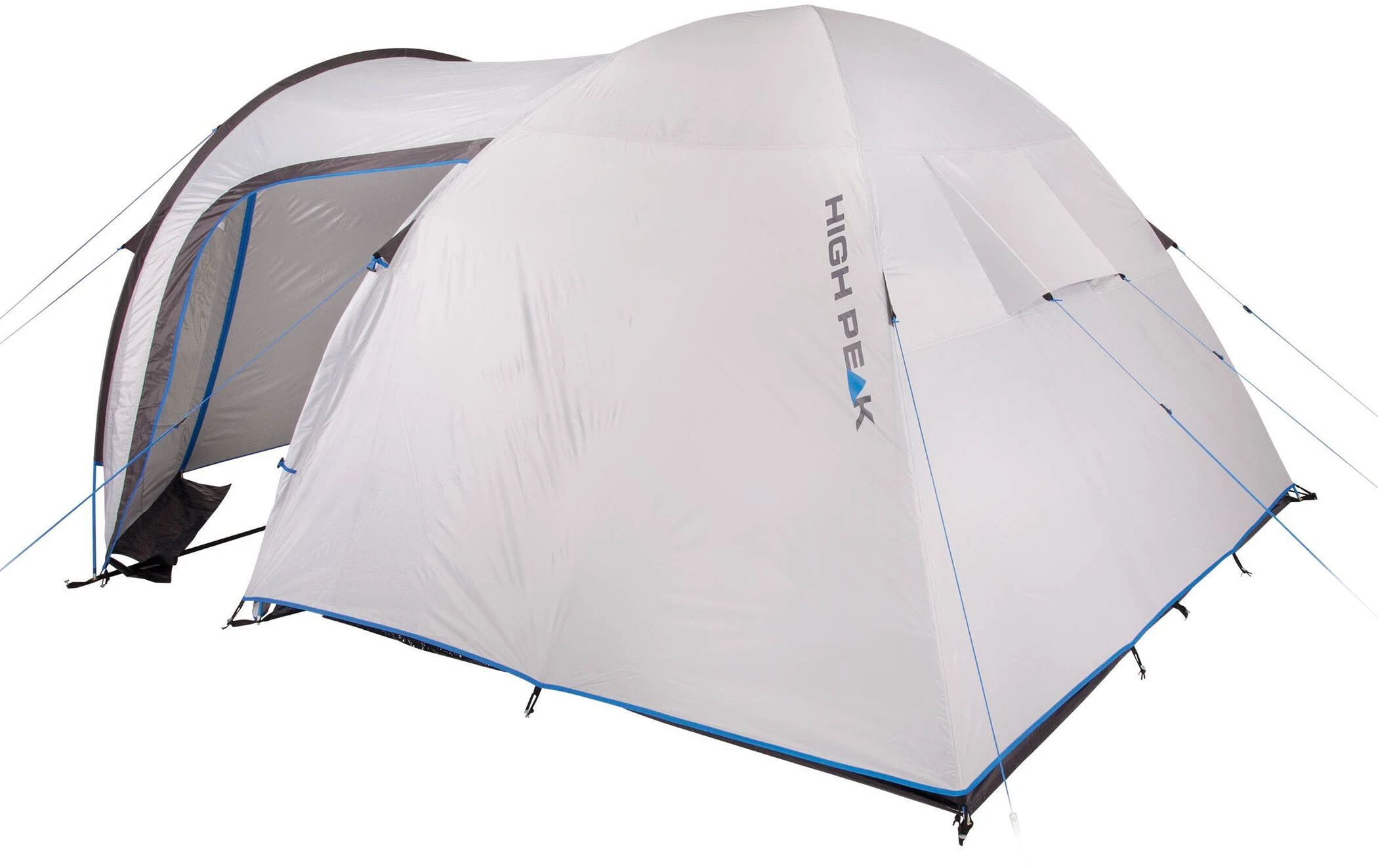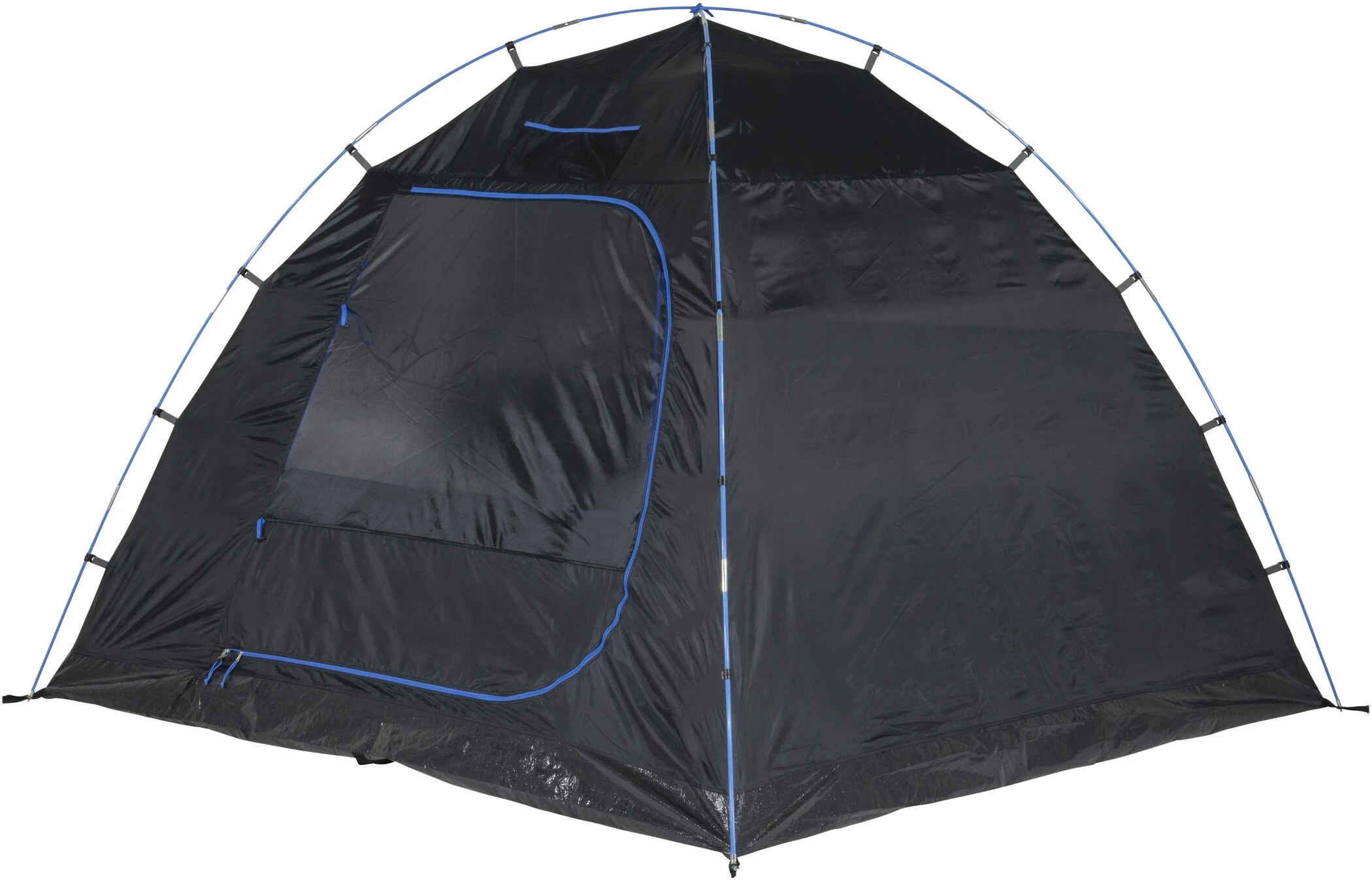 De klassieke koepeltent biedt volledige hoofdruimte. De grote apsisruimte met zijdeur biedt een compacte woon- en bergruimte. Kristalheldere ramen verlichten het woongedeelte. Vuilvangers rond de apsis houden het vuil buiten. Drie all-weather-openingen zorgen voor een continue luchtstroom. De ventilatie blijft altijd open voor volledige werking. Blauwe tape in bijpassende kleur rond de onderste luifel, scheerlijnen en palen. Duurzame en sterke 5 mm stalen pinnetjes werken zelfs op harde campings. Waterdichte naden, verzegeld met tape.