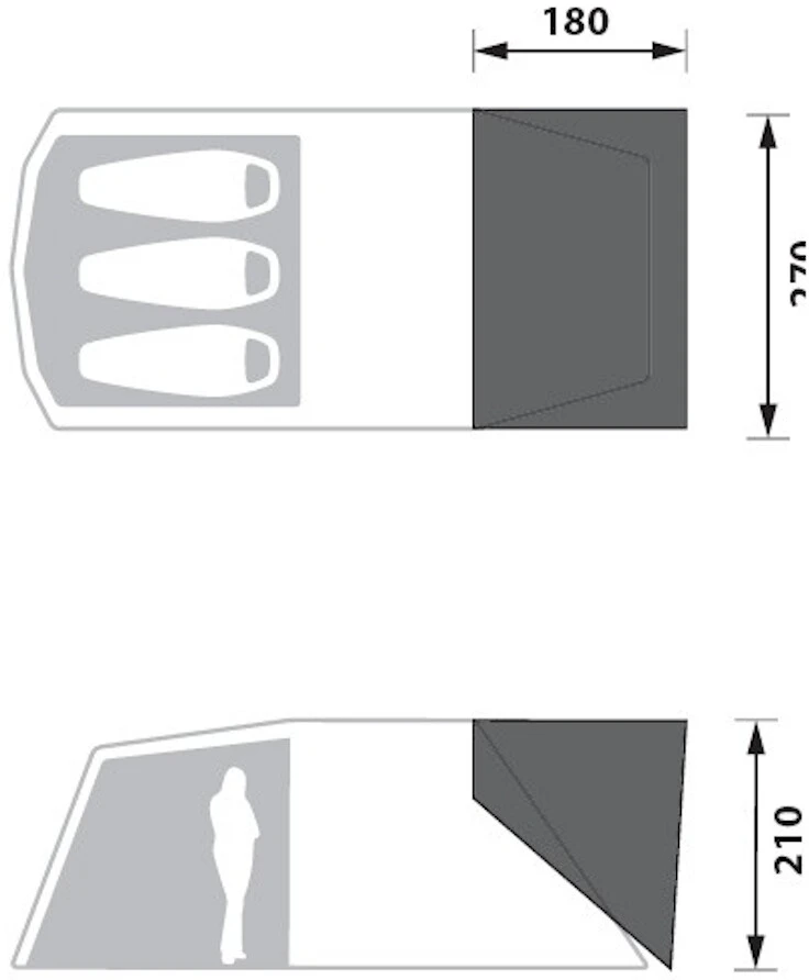 Verleng uw Dogon tent met deze steel. De veranda biedt schaduw of een comfortabele zitplaats die beschermd is tegen wind en regen. Past op de Dogon 3 Air met het productnummer TFDOG3F6DT03331, tent niet inbegrepen.