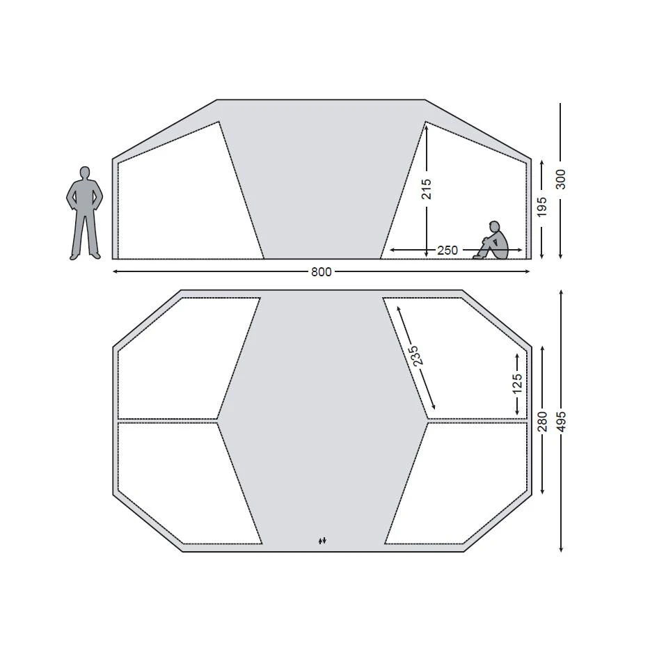 - Ramen in de cabine komen overeen met de ramen in de tent