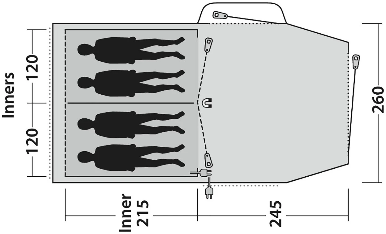 De lichte en compacte Springwood 4 biedt plaats aan maximaal vier personen. Hij beschikt over twee Premier slaapcabines met verduisterde binnentent en Outwell Quick & Quiet binnendeuren en is zeer geschikt voor weekendtrips en rondreizen. Volledige stahoogte in het woongedeelte, een regendichte zij-ingang met gaasinzet, het Outwell HookTrack System, een grote, D-vormige vooringang en het Rear Ventilation System zorgen voor veelzijdig kampeercomfort.