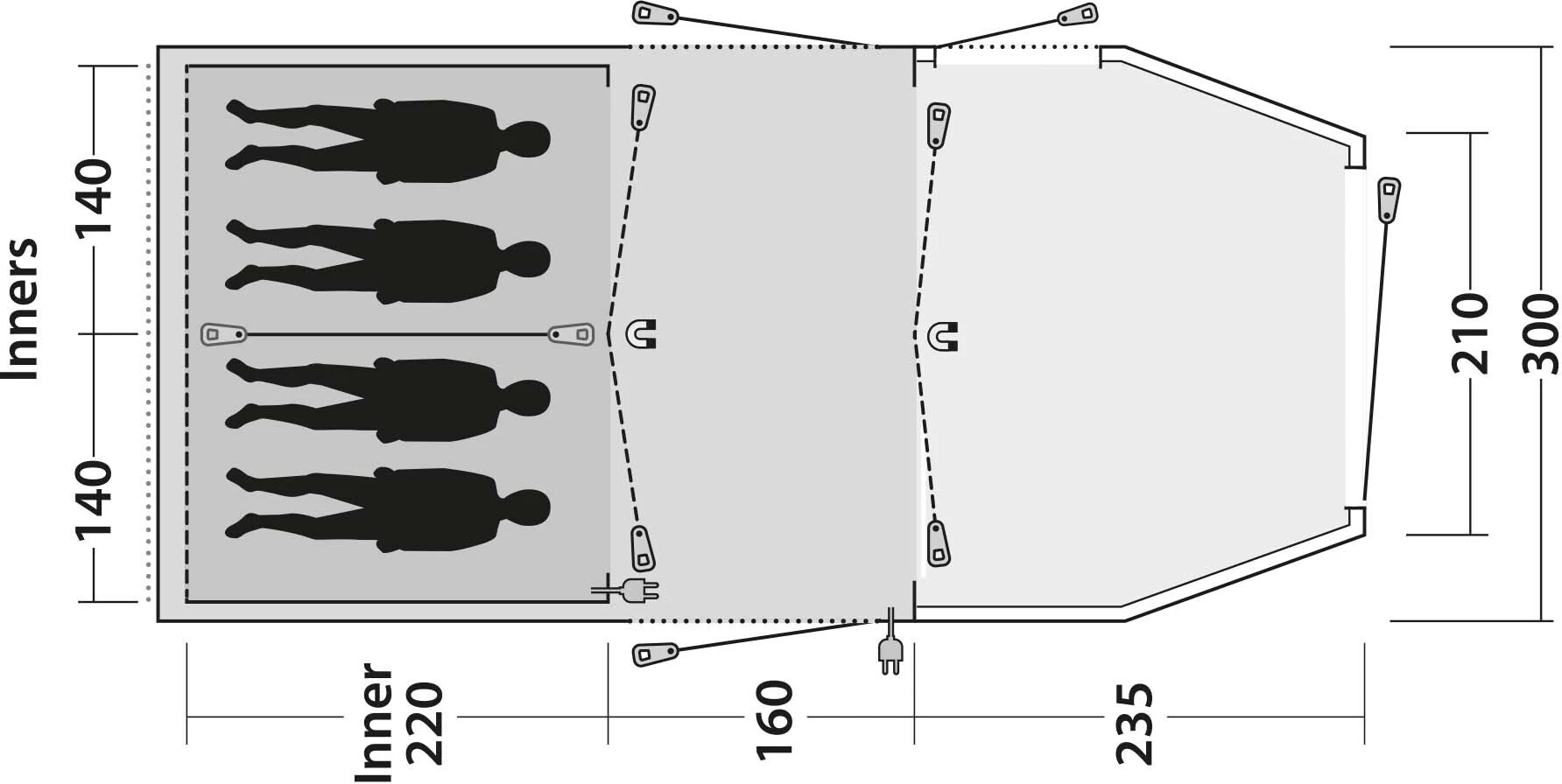 - Netvakken aan de binnententen voor het veilig opbergen van en snelle toegang tot kleinere spullen