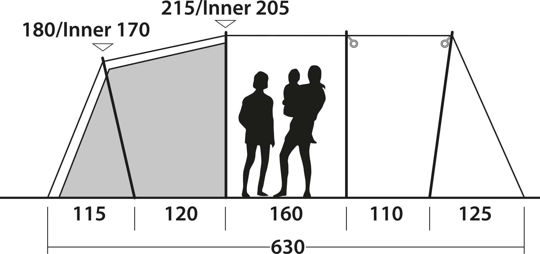 - Binnentent vloermateriaal: Taffeta polyester, PU gecoat