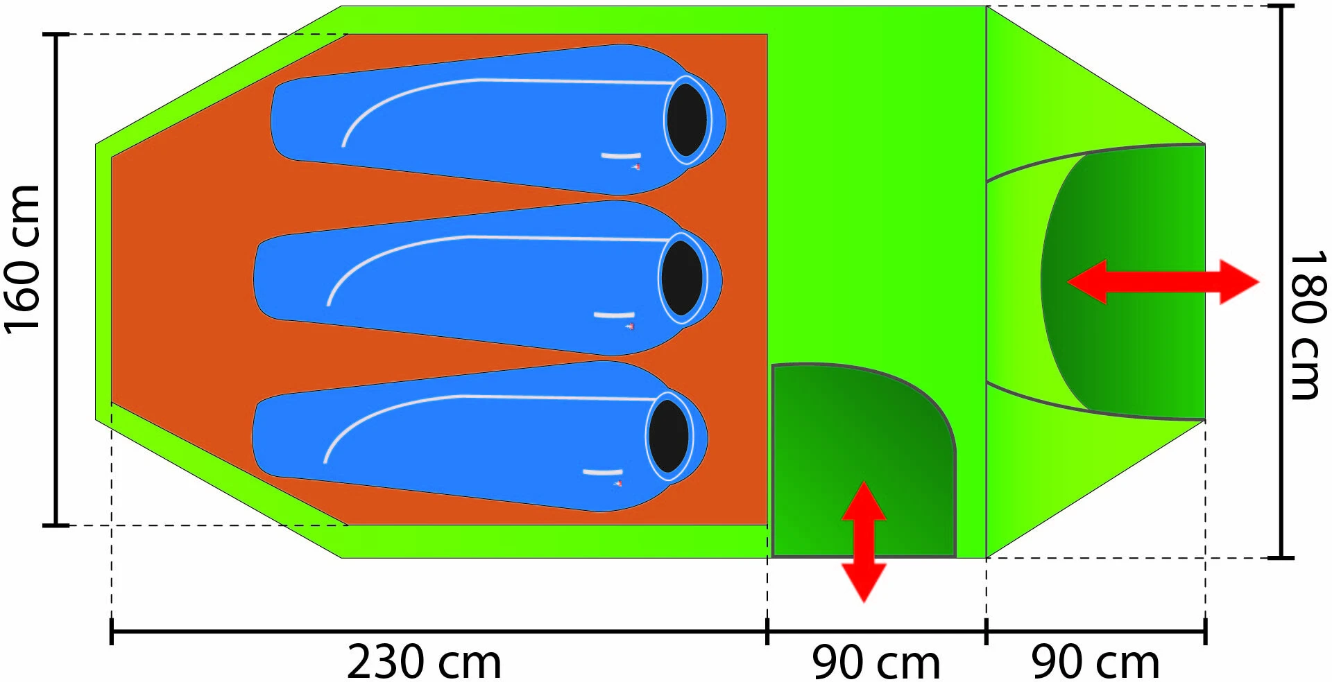 Maar dan kan het echt punten scoren. Met een binnententlengte van 230 cm en een breedte van 160 cm biedt Rejka’s langste tunneltent voldoende ruimte voor u en twee van uw vrienden. Als u kleine kinderen meeneemt op uw trektocht, kunnen ze zelfs staand bij u slapen met een binnententhoogte van 110 cm. Bovendien biedt de bijna reusachtige vestibule van de Antao III light HC voldoende ruimte om alle bagage op te bergen.
