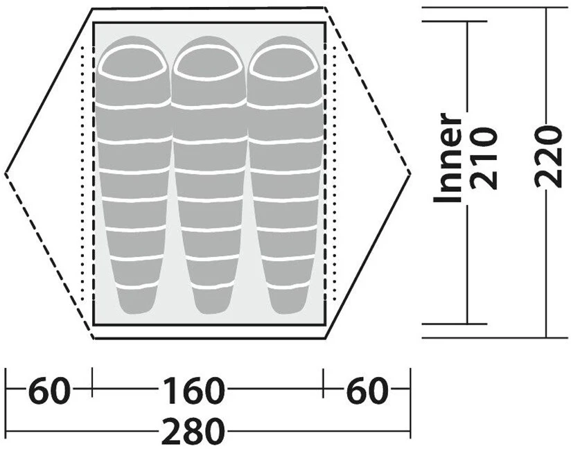- Binnentent gemaakt van polyester 190T, 68D, ademend