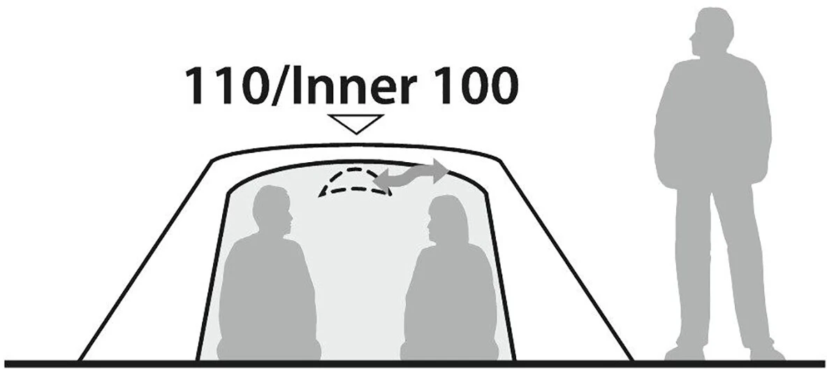 De combinatie van koepelconstructie en korte, dwarsgeplaatste nokstok biedt flexibele leef-, kook- en opslagruimte. Dankzij de bijzonder grote hoogte en breedte binnenin, kunnen de twee inzittenden naast elkaar zitten. De twee ingangen bieden beide kampeerders een gemakkelijke toegang en verschillende mogelijkheden om de ingangen te openen, die enerzijds bescherming bieden tegen de wind en anderzijds voor ventilatie zorgen. De stevig verankerde paaluiteinden en de dubbele oogjes in het robuuste weefsel geven de binnenstokken een stevige houvast aan de nokstok.