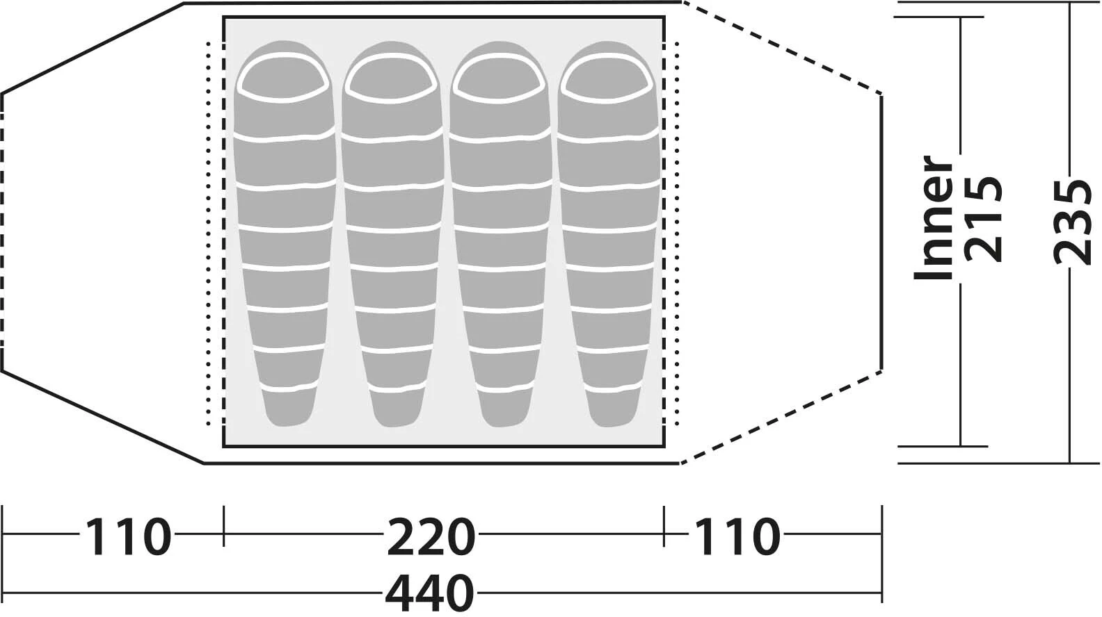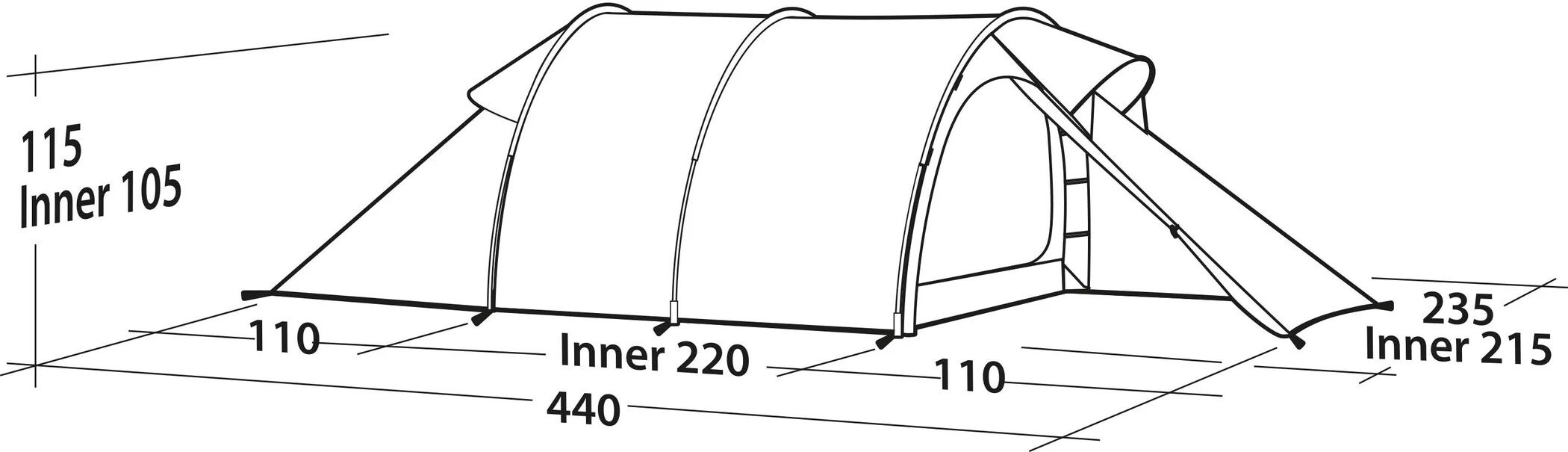 - Binnentent materiaal: Polyester 190T, 68D, ademend