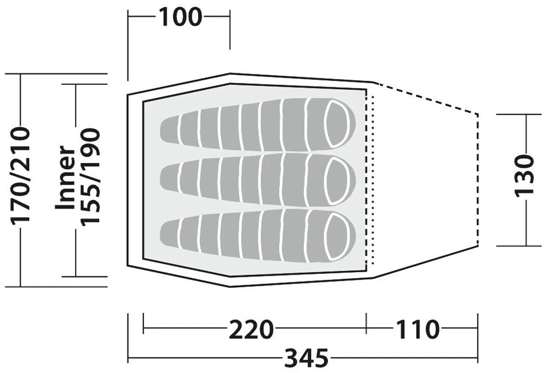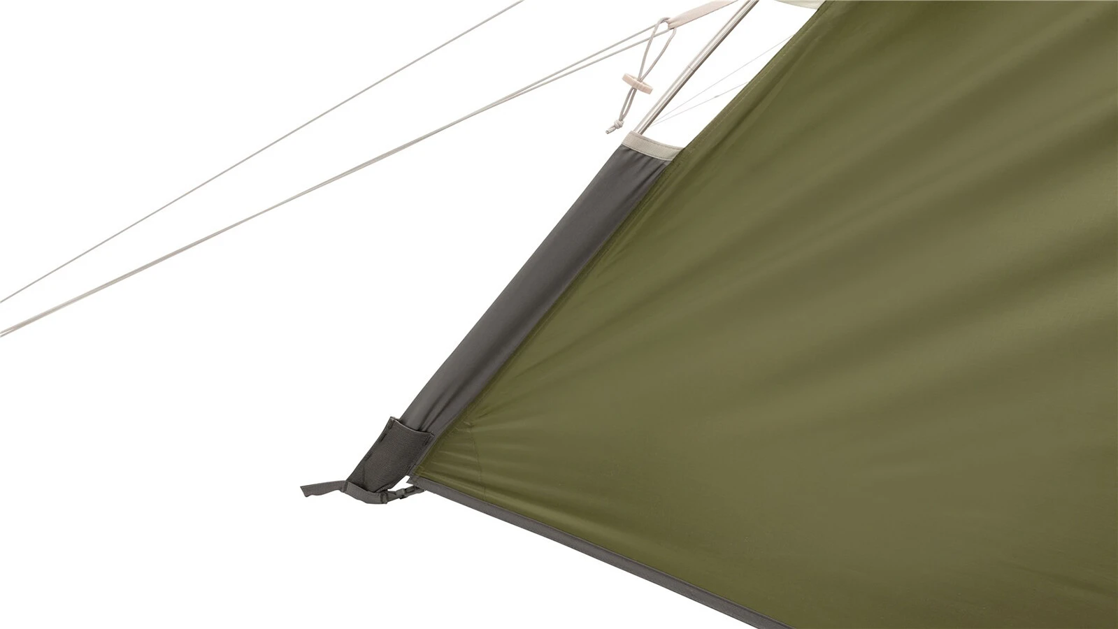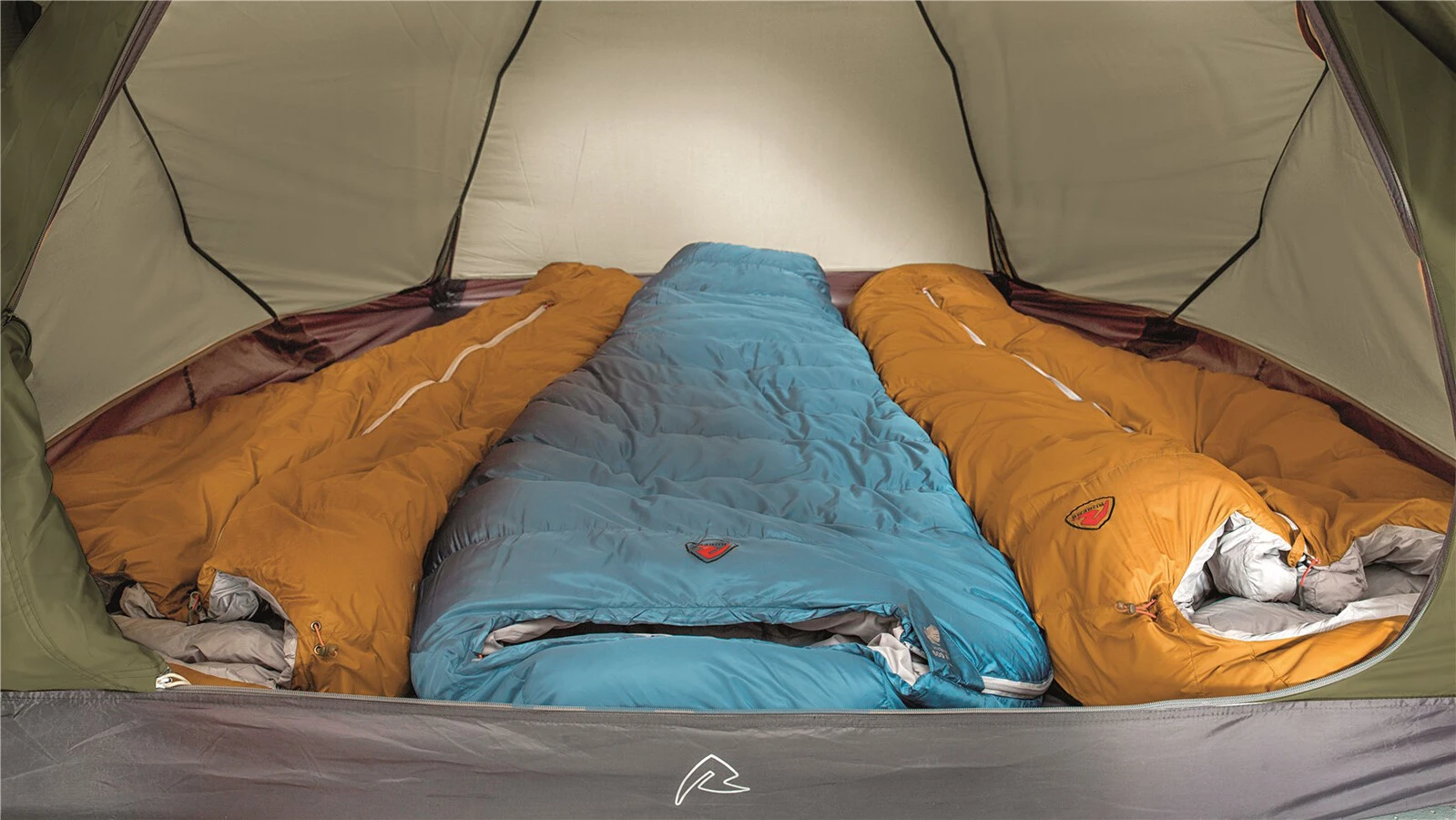 De semi-geodetische koepeltent Shikra 3 overtuigt door zijn uitstekende stabiliteit bij slecht weer. Hoogte en breedte van de tent zijn ideaal voor drie kampeerders. Het is ook mogelijk om in het voorportaal te zitten en van daaruit voedsel te bereiden. De buitendeur kan flexibel worden geopend en biedt moeiteloze, windbeschermde toegang tot de tent. De deur kan worden geopend om de bovenste ventilatieopeningen te ondersteunen, die van binnenuit kunnen worden aangepast. De paalgoten aan de korte uiteinden maken het makkelijker om de lichtmetalen palen in het oog te houden en versnellen het opzetten.