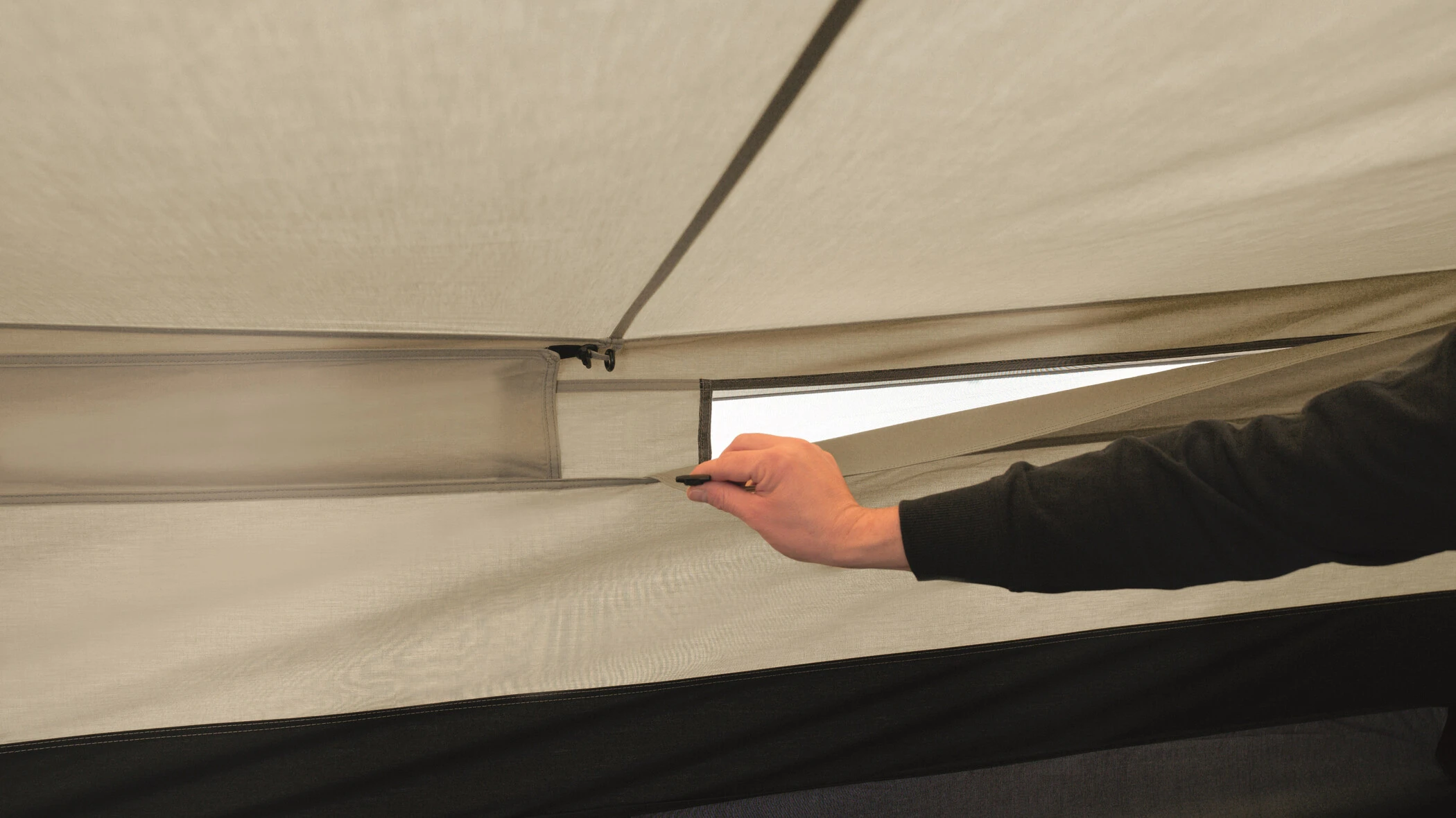 - De oprolbare voordeur biedt een panoramisch uitzicht, vergemakkelijkt de toegang en verbetert de ventilatie
