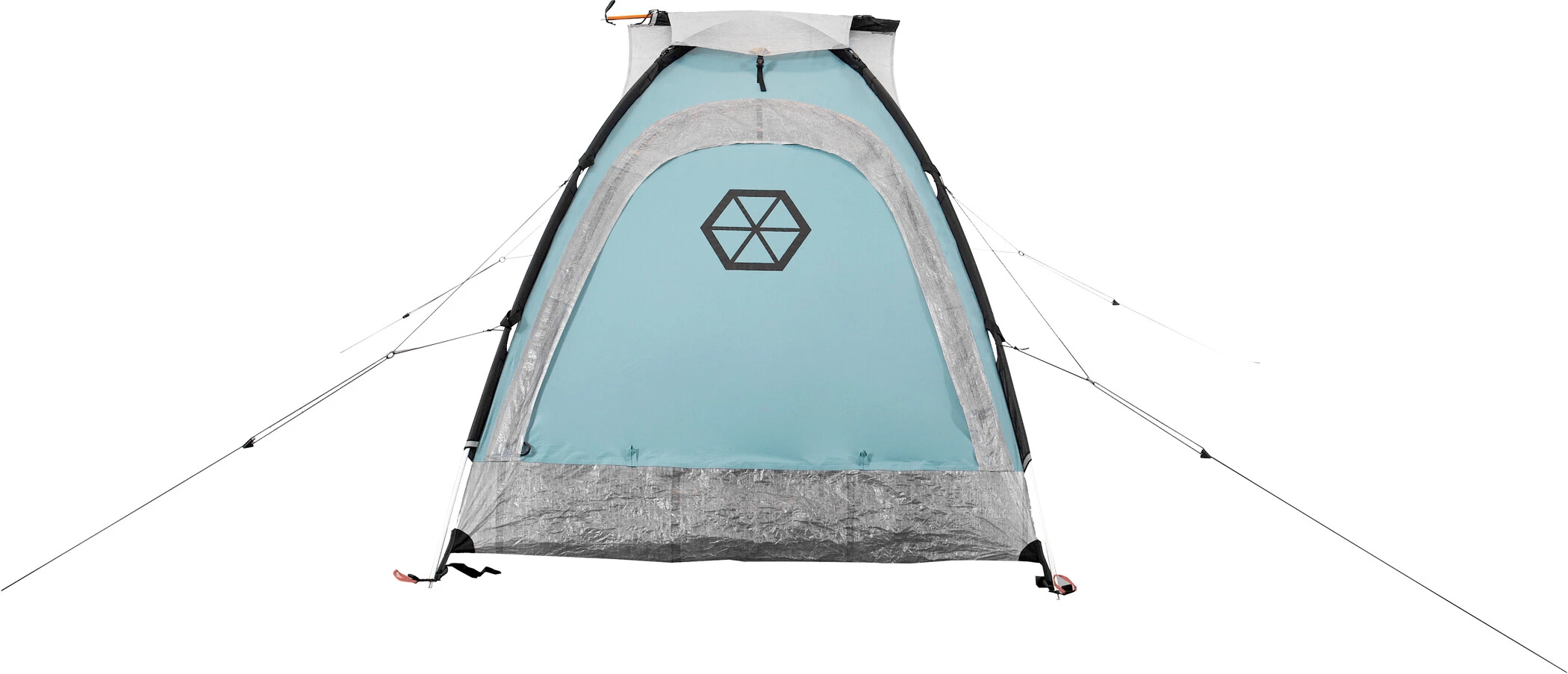 U kunt alles wat u nodig hebt opbergen in de twee grote zijvakken en het afneembare bovenvak. Volledig verstelbare hoge ventilatieopeningen binnenin zorgen ervoor dat de tent zuurstof krijgt waar lucht schaars is en garanderen een perfecte condensbeheersing.