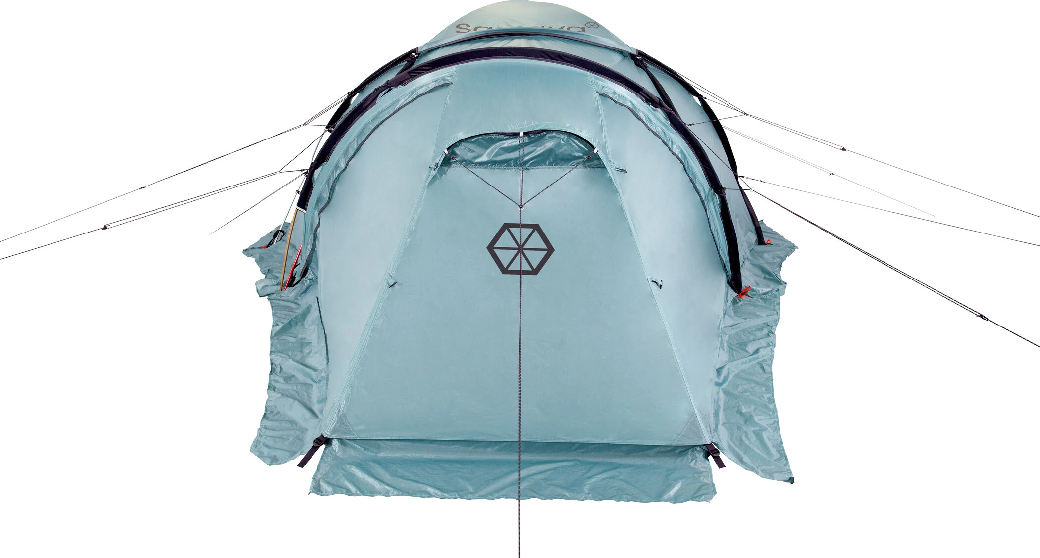 De 3 ingangen van de Samaya BASECAMP tent laten u toe uw toegang te kiezen naargelang de windrichting. Binnen in de tent kunt u de twee vestibules gebruiken om al uw omvangrijke spullen op te bergen en te genieten van het comfort van het interieur. Dankzij het bewoonbare volume en de vele zakken kunt u zich comfortabel installeren zodra u uw basiskamp hebt opgezet.