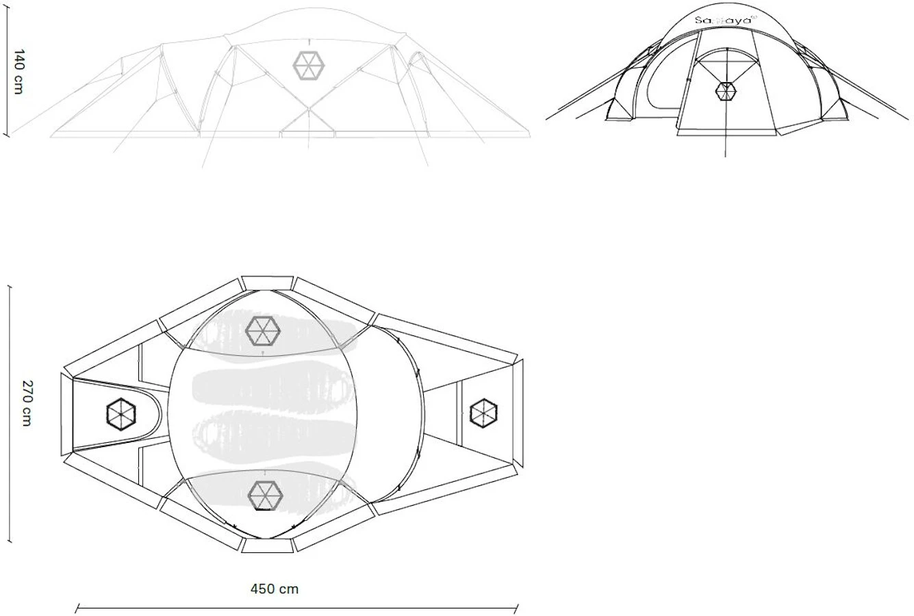 De geodetische structuren maken het mogelijk het interne volume zo veel mogelijk te optimaliseren en garanderen tegelijkertijd een architectuur die bestand is tegen extreem zware sneeuwval en wind. De Samaya BASECAMP is ontworpen voor uw comfort en veiligheid in alle omstandigheden, zelfs de meest extreme. De 7 kruisingen van de stokken op de Samaya BASECAMP tent zijn de garantie van deze betrouwbaarheid tegen de elementen.