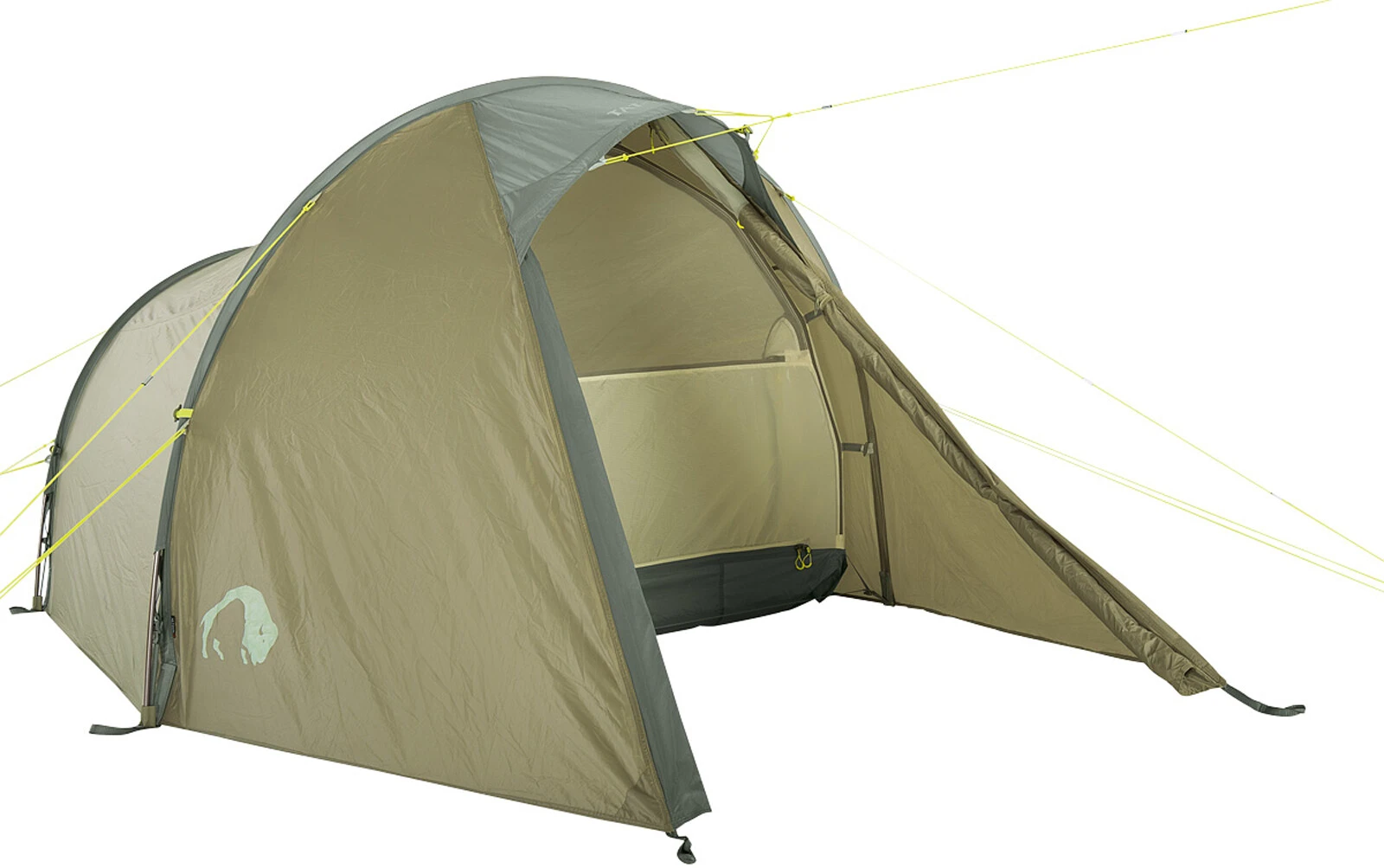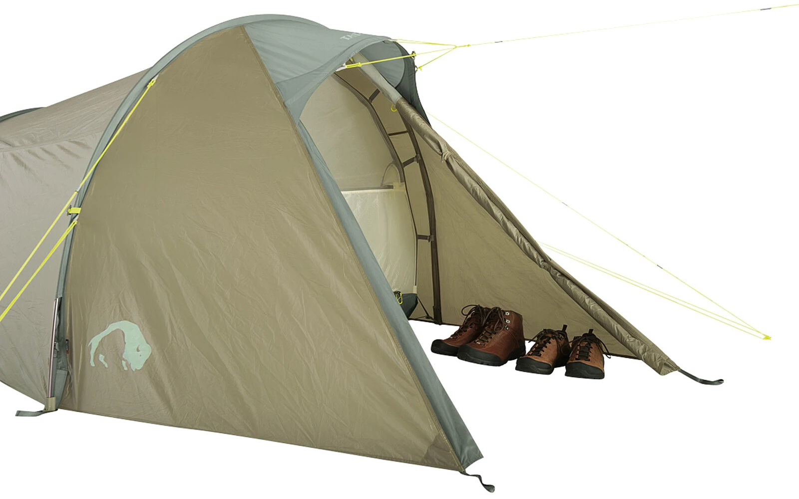 Stevige en slijtvaste tunneltent voor drie personen. De binnententent is al aan de buitentent bevestigd, maar kan indien nodig snel losgeknoopt worden. Deze eigenschap wordt onmiddellijk gewaardeerd als het regent, omdat het de binnententent droog houdt tijdens het opbouwen en afbreken. Een ander niet te onderschatten voordeel: De verkorting van de achterste giekboog houdt het gewicht en de verpakkingsgrootte zo laag mogelijk zonder dat dit ten koste gaat van het slaapcomfort en de ruimtebenutting. Dankzij de vele ankerpunten en de robuuste afwerking is Narvik een betrouwbare accommodatie in alle weersomstandigheden.