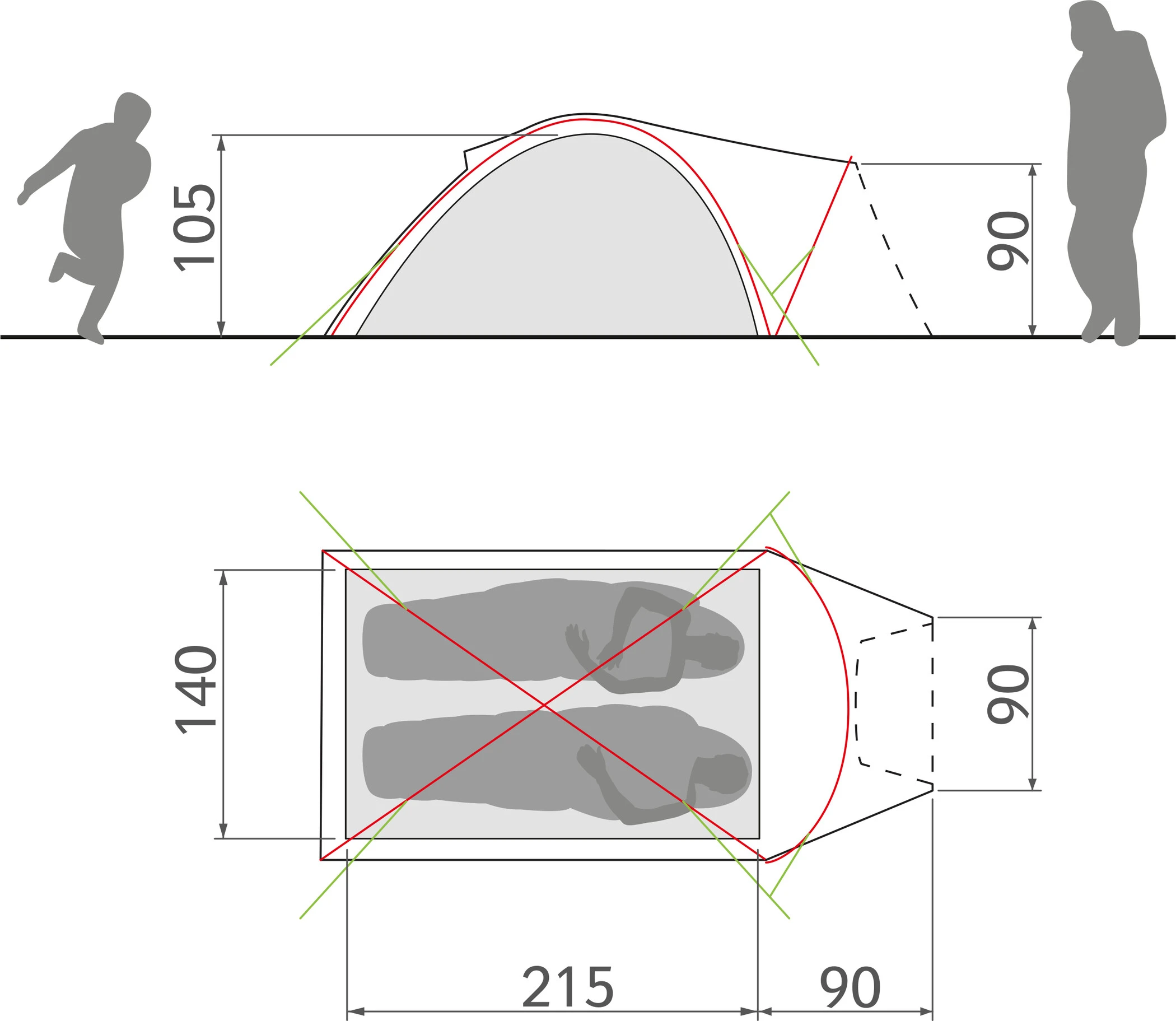 - Binnententent: 3,0 m²