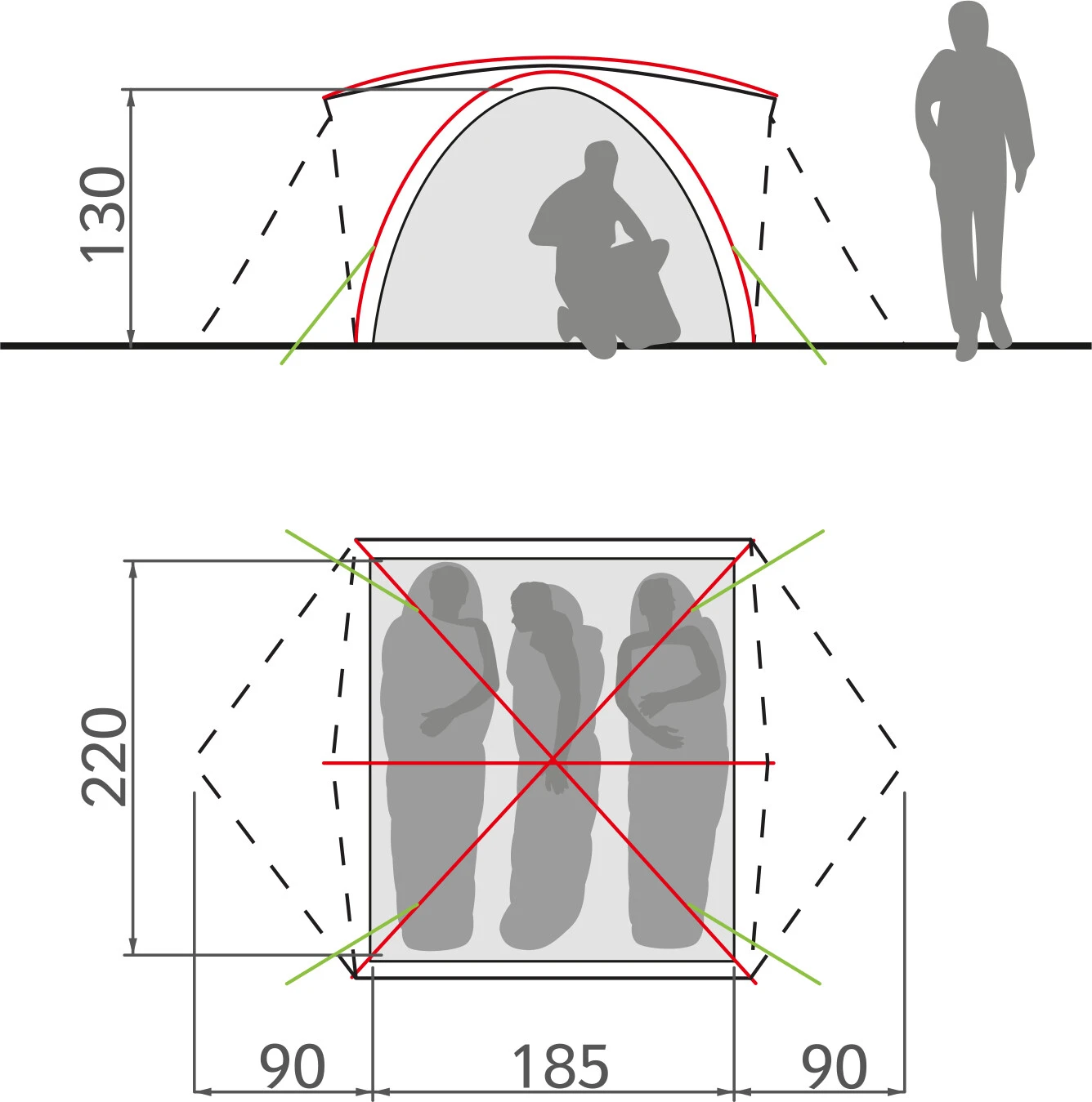 - Binnententent: 4,1 m²