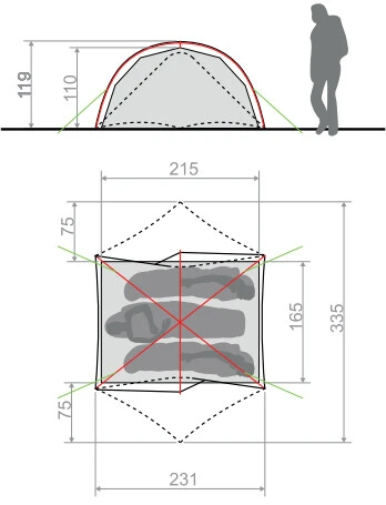 - Materiaal buitentent: Polyamide 20 D Ripstop aan beide zijden voorzien van een siliconencoating