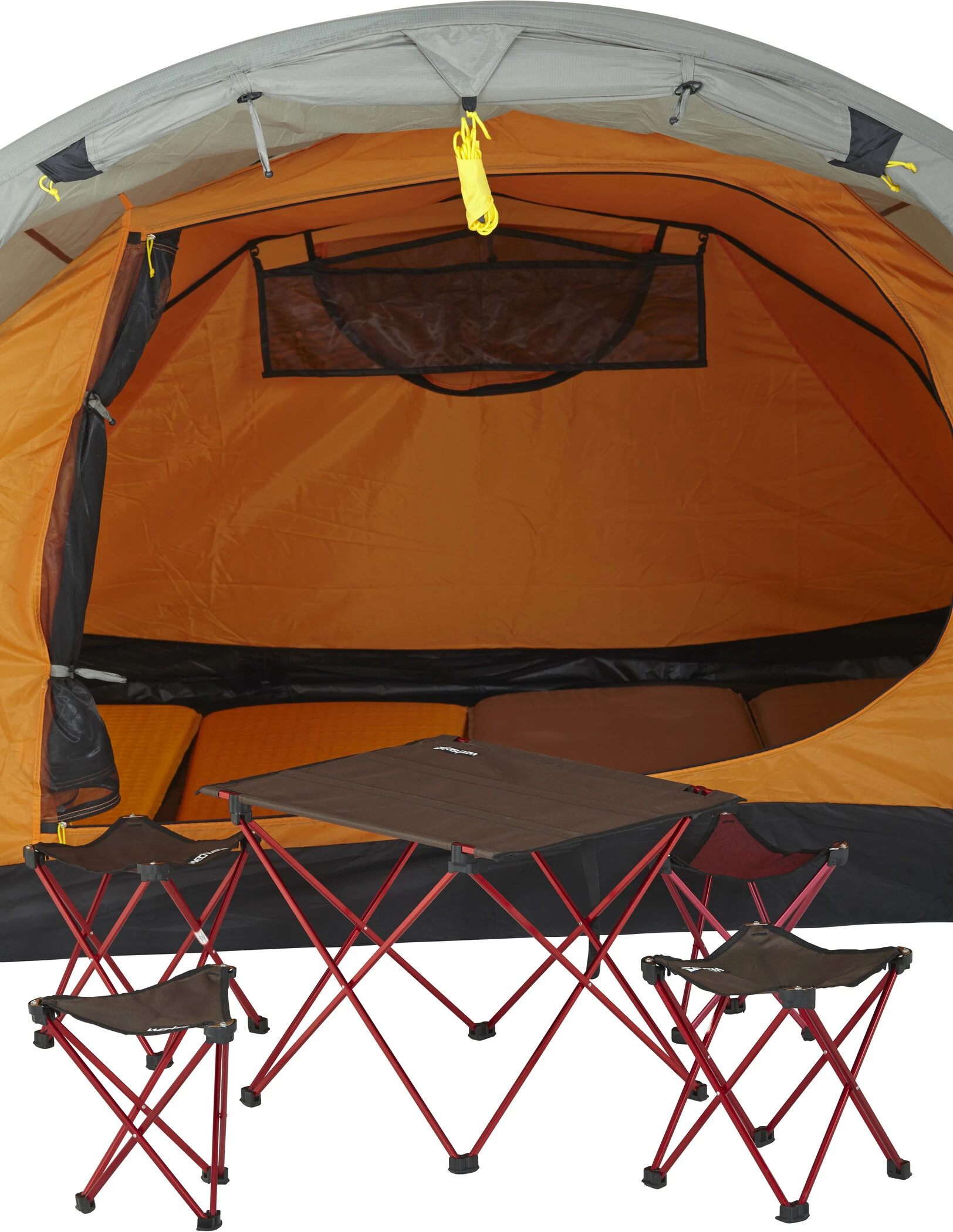 - Binnentent: Polyester 70D, 185T, waterafstotend, ademend